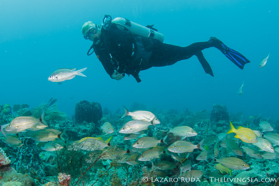 Visibility was top to bottom with 40-50ft. of horizontal visibility. While our water clarity isn’t always Caribbean-like, it is the nutrients in the water that makes Palm Beach surpass the other dive destinations when it comes to marine life. The stuff floating in the water column is food for the reef and its inhabitants. Thankfully, the water was still clear enough for some blue-water photographs.