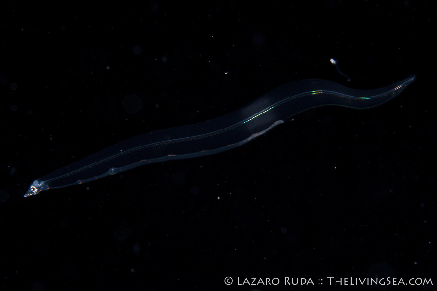 A glass eel, in ten feet of water, used its ribbon-like body to set me in a trance-like state before beginning its descent. At around thirty feet a juvenile flounder took over the job and lured me into fifty feet. It was here the arrow squids took over. Flashing their brilliant red chromatophores, we slowly descended deeper and deeper. Thankfully a brisk change in water temperature snapped me out of my trance. My epiphany: the Siren’s Call has nothing to do with mermaids — it’s these fascinating creatures that do their job for them.