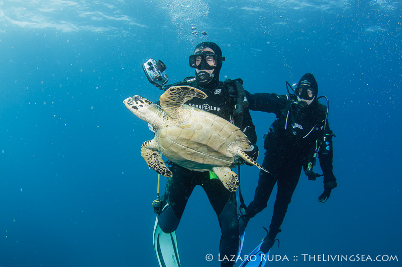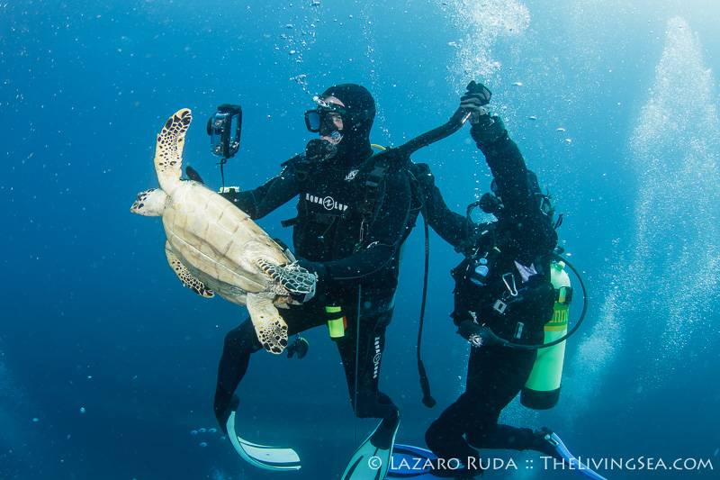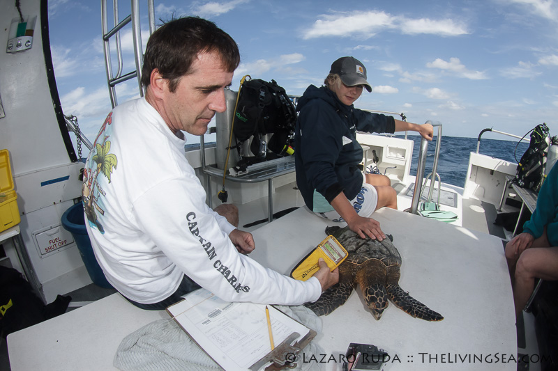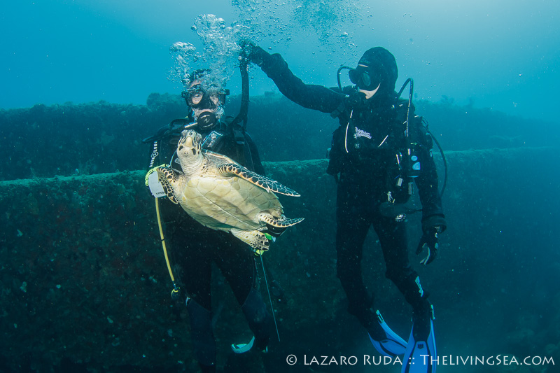 Back on the boat, Larry Wood took measurements of this tiny turtle, tagged the turtle’s flipper for future identification, inserted a PIT tag, and photographed in detail this small turtle. The hopes is that through the help of divers like you and I, he will be able to build a picture of this turtles whereabouts and it’s behaviors. As citizen scientists we can help make a difference in the life of this critically endangered sea turtle.