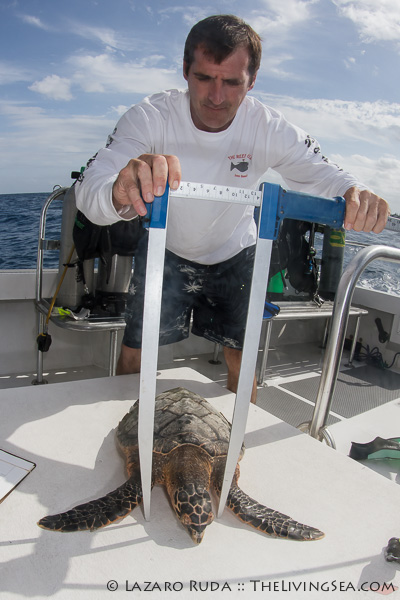 The handling of this critically endangered hawksbill sea turtle was done under a Florida state permit provided to The Comprehensive Florida Hawksbill Research and Conservation Program run by Larry Wood (pictured above).