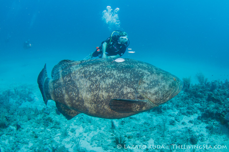 A purple mouth moray was hunting with numerous jacks, groupers, and even a soap fish along the reef. A large southern stingray glided alongside the group on the outskirts of the reef. Reaching Ron’s Rock, our friendly and large goliath grouper greeted us.